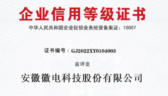 • 徽電科技榮獲“AAA級企業(yè)信用等級”認(rèn)證